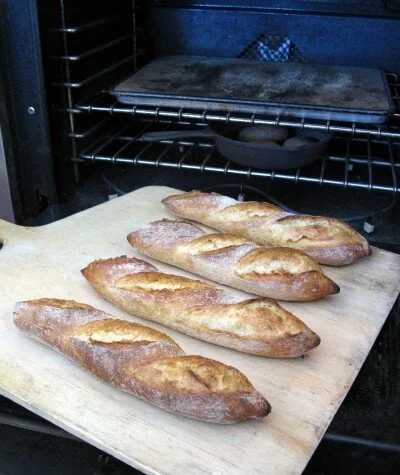I’m testing new recipes for the revised Best Bread Ever. This is my second test making the baguettes at home in my Viking oven. The baking stone I am currently using was given to me by the oven manufacturer Woodstone a few years ago to test. I am very pleased with the results.